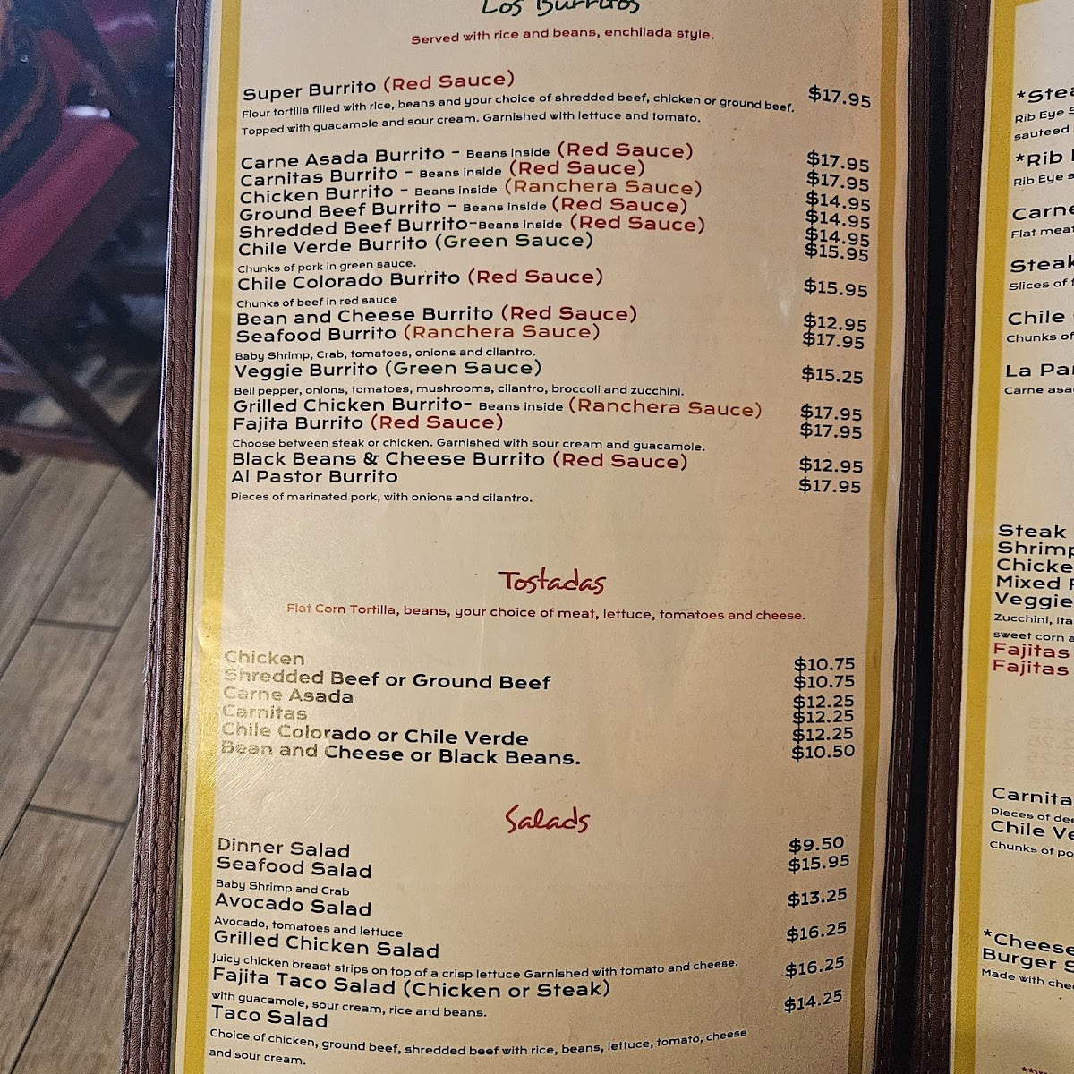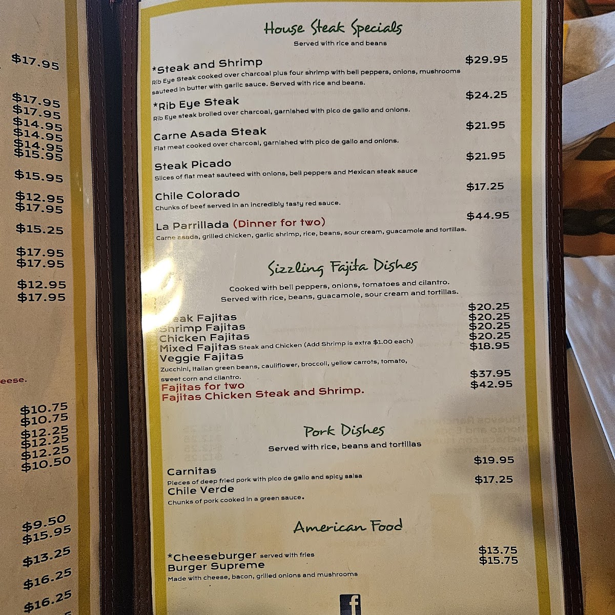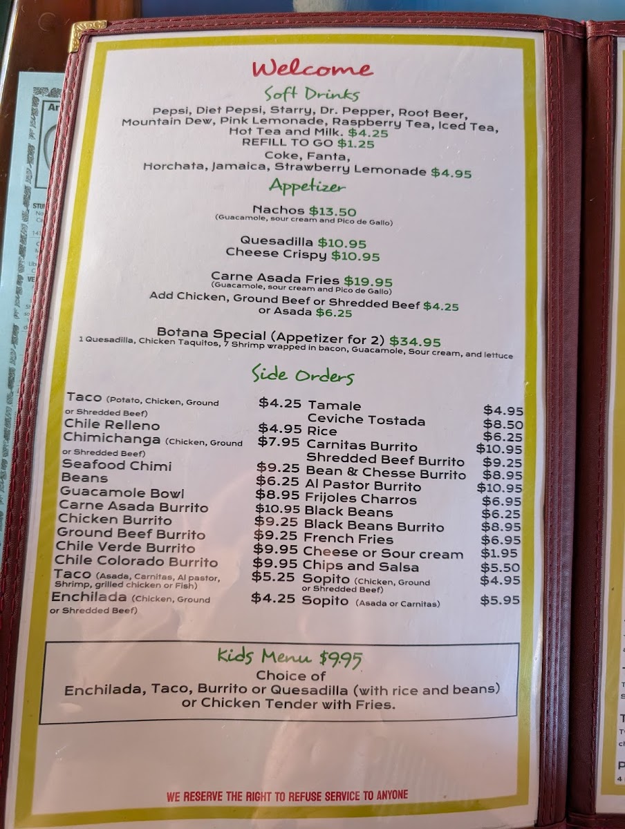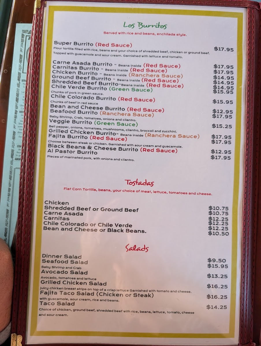 This menu is suitable for lunch or dinner, catering to those seeking a full meal or lighter options. Guests typically engage in casual dining, ordering from a diverse list that balances traditional Mexican flavors with familiar favorites.